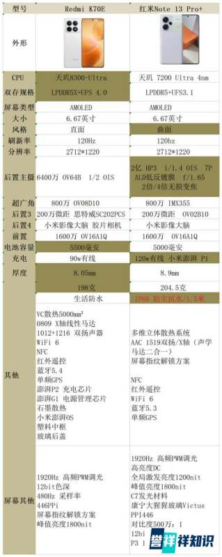 若注重综合性能、续航和轻薄手感,推荐红米K70E;若更看重拍照、外观颜值和IP68防水,则红米Note 13 Pro+更合适。以下是具体对比分析: