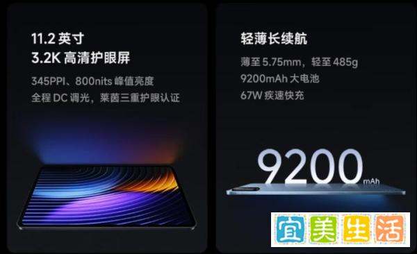 尺寸重量:平板长 251.22mm、宽 173.42mm,标准版厚度 5.75mm,重量约 485g;柔光版厚度 5.8mm,重量 494g。