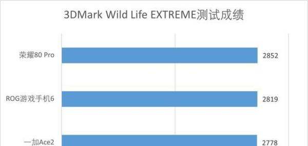 荣耀80 Pro:2852分结论:荣耀80 Pro游戏性能略优,ROG游戏手机6次之,一加Ace2分数稍低。