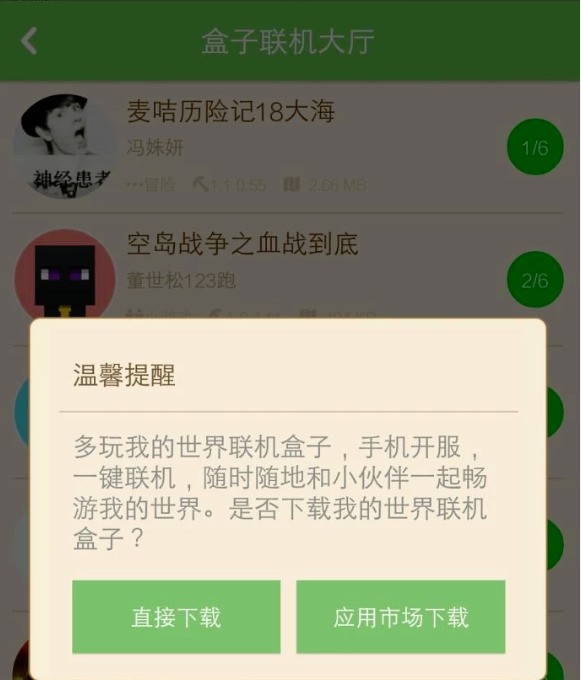 3、选择其中一个房间,会提示你下载我的世界,如下图所示。