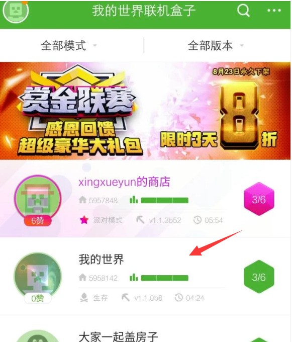 5、最后,选择要玩的模式以及手机上的版本,找到一个符合的房间加入或者创建一个等待别人加入也可以,如下图所示。