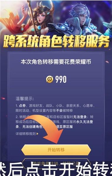 需注意,角色转移后,原安卓账号将无法再使用该角色,因此在决定转移前,请务必备份好你想要转移角色的相关信息,包括但不限于装备、皮肤等。同时,由于角色转移涉及较高的荣耀币消耗,建议在经济条件允许的情况下进行。