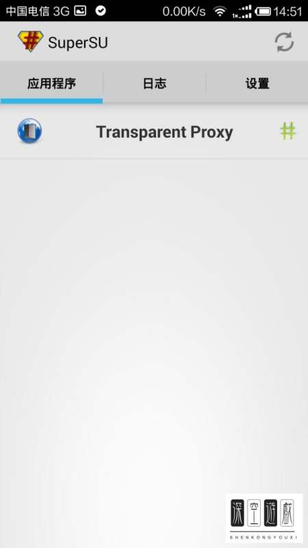 下载并在手机上安装Transparent Proxy软件,并让他获得root权限