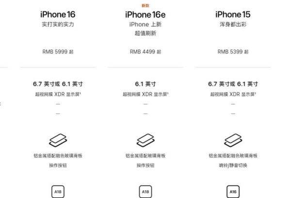 定价策略缺乏诚意iPhone 16e起售价4499元,仅比iPhone 15的4599元低100元,但后者在叠加国补后实际到手价仅4000元出头。若考虑性价比,iPhone 15的降价幅度使其更具吸引力。