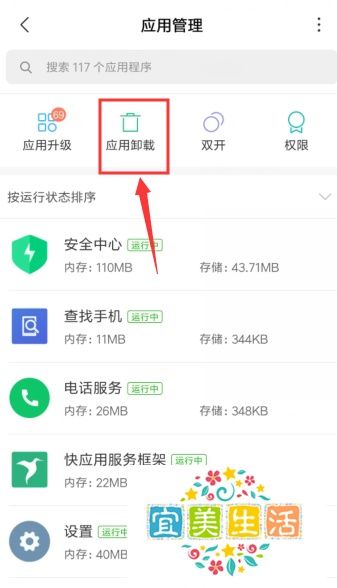 打开应用管理后,点击有垃圾桶图标且下面写有应用卸载的图标,会出现手机中所有可卸载应用,选择想要卸载的应用即可。