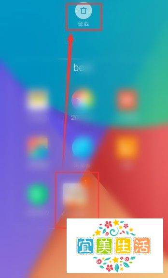 将要删除的图标继续往垃圾桶图标上拖动,当垃圾桶图标变了颜色时松开手指,即可删除图标并卸载程序。