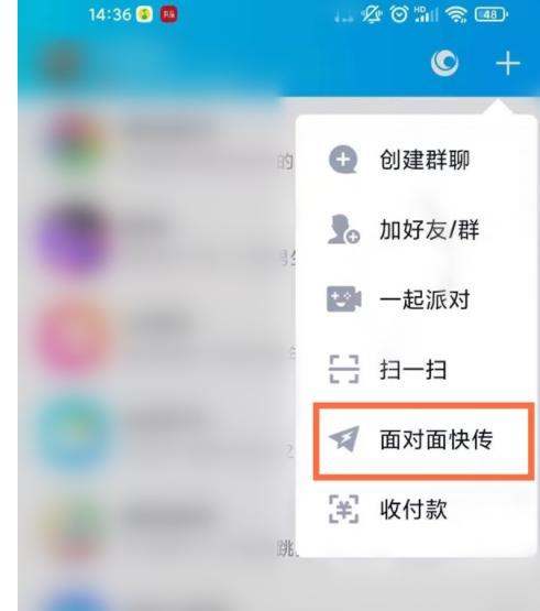 步骤2:选择面对面快传在弹出的功能列表中,点击【面对面快传】选项,进入文件传输准备界面。