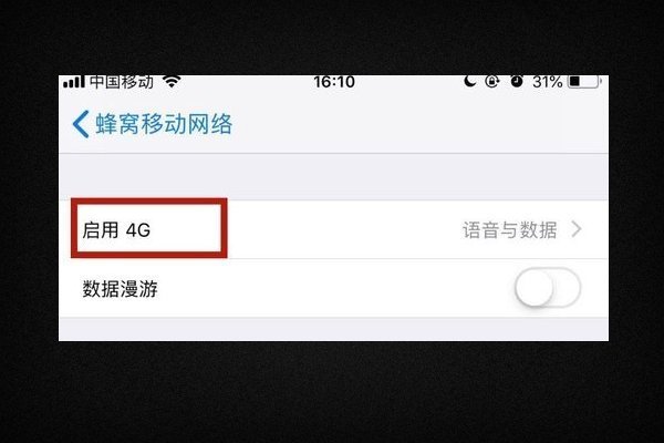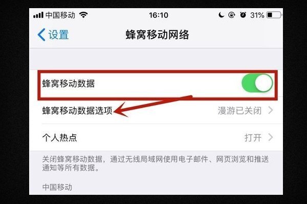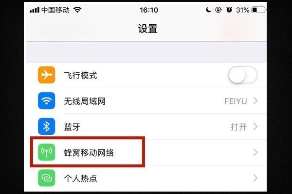 3、点击开启蜂窝移动数据开关并点击蜂窝移动数据选项。