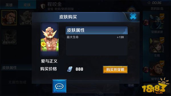 这时会弹出对话框,告诉你皮肤的自身属性加成和购买价格,玩家可以直接选择购买。并使用这款皮肤直接出现在对战中。