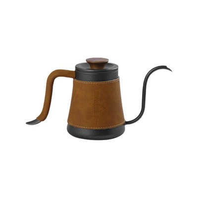 漫思鹤手冲咖啡壶 600ml黑色带盖(特氟龙不沾)